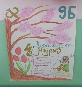Наурыздың 1-і күні І-ші ауысымда оқитын оқушылар мен ұстаздарды мектептің кіре беріс дәлізінде ДТІЖО –Аликеева З.К., Мұқаш Ұ.А., педагог-ұйымдастырушы –Тастанбекова Р.Е., әлеуметтік педагог –Тилешова М.М., педагог-психологтар Чуюмбек А.Э., Қырғызова А.А., «Өзін-өзі басқару» ұйымының белсенділері, музыкалық қошеметпен күтіп алды.