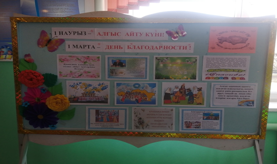 «Алғыс айту» күніне арналған апталық бұйрығы шығарылып, іс-шара жоспары бекітілді. Жоспар бойынша төмендегідей іс-шаралар атқарылды.
