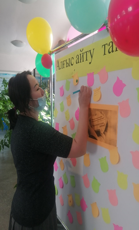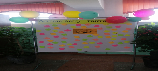 Дәлізге қойылған алғыс тақтасына ұстаздар мен оқушылар өз алғыстарын жазып, қолтаңбаларын қалдырды.