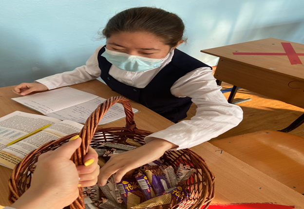 Сонымен қатар оқушылар мен ұстаздарға тәттілер мен жапсырмалар таратылды. Дүйсенбілік көңіл-күй атмосферасы көтеріліп, барлық келушілер ризашылығын білдірді.
