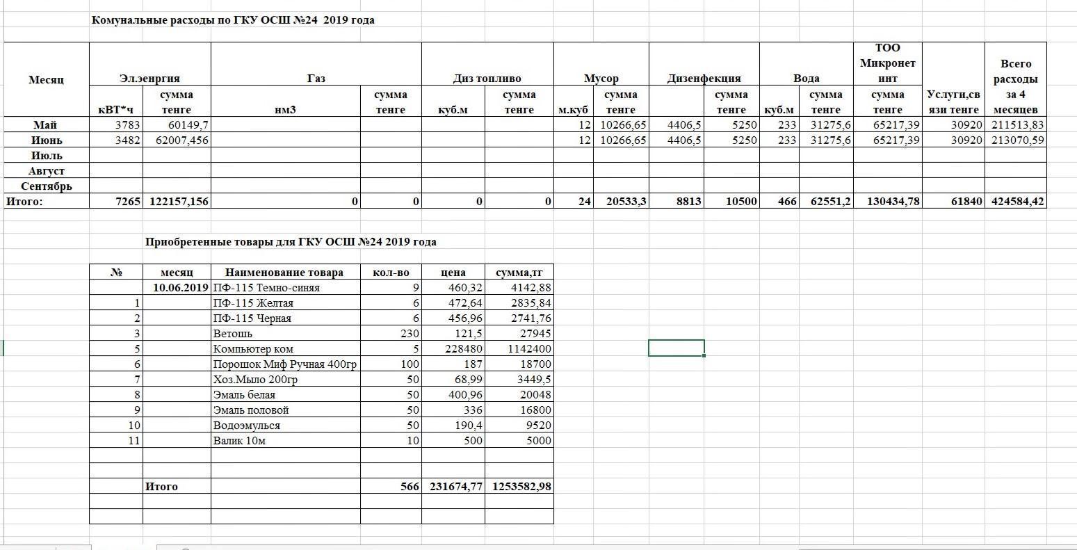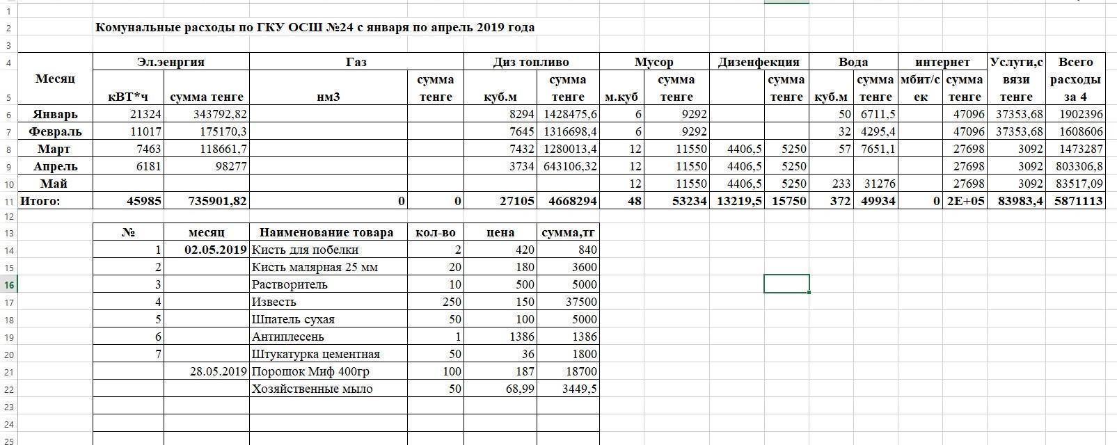 Комунальные расходы » №24 жалпы білім беретін орта мектебі»