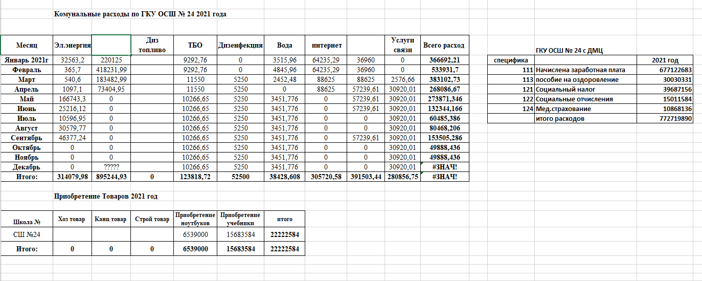 » » » Комунальные расходы по ГКУ ОСШ № 24 2021 года
